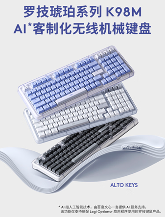 | 键盘 | 无线蓝牙电竞 | 罗技无线蓝牙AI机械键盘K98M | 410 | 黑/白/蓝色现货 | 半透明外壳/热插拔大理石轴/98键/Bolt接收器/USB-C充电/AI支持 | |||||||||||
